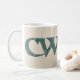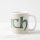 A fun Coffee Mug with the Welsh word 'cwtch', meaning 'cuddle' or 'hug', in a Celtic script, filled with a stylish Paisley pattern on a linen-look background.