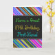 This fun, colorful and whimsical birthday-themed greeting card design features a warm birthday wish like "Have a Great 34th Birthday, First-Name!" on the front. The name on the front can be personalized. There are also multicolored stripes at the top and bottom of the front. The inside features a customizable birthday message. A greeting card like this could be a fun way to deliver birthday wishes to somebody who is celebrating their thirty-fourth birthday. [~Z0000269]
