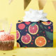 This fun and colourful wrapping paper showcases vibrant red and orange citrus fruits, such as grapefruits and oranges, set against a bold dark background with accents of lush green leaves. The lively design brings a burst of freshness, making it ideal for wrapping gifts for citrus enthusiasts. Whether you're celebrating a sunny summer party or gifting something special during the winter season, like Christmas, this wrapping paper adds a cheerful, refreshing touch to any occasion. Its bright, tropical feel contrasts beautifully with winter celebrations, ensuring your gift stands out and brings a joyful vibe to the