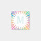 Art teacher themed sticky notepad personalised with your initial inside a circle of coloured pencils, some with patterns, in soft rainbow colours. Kindergarten teacher sticky notepad with pencils in soft shades of the rainbow surrounding your monogram. Colourful art teacher's sticky notepad with your initial in pale mint green.