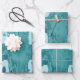 3 identical Teal (Blue/Green hues) of coloured gift wrapping paper in this fun hand painted Union Jack Art by Heva Weva.