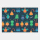 Fun Colourful Alien Pattern for Kids on Blue Party Wrapping Paper Sheet