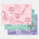 Fun, bold and modern bakery theme wrapping paper sheets. Our design features an assortment of our hand-drawn cooking and baking utensils (whisk, piping bag, pastry bag, stand mixer, spoon & rolling pin) The utensils are arranged to create this fun and bold baking theme wrapping paper design. We’ve created three fun and colourful wrapping paper sheets in blue, pink and purple. You can change all of the colours, including all the utensils and background colour. All artwork by Moodthology.