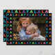 Unique, classic, trendy, pretty and decorative Holiday card. Cute Happy Holidays greeting text and room to customise or personalise with a photo, family name (or individual names) and message of your choice. Framed by colourful FA LA LA word art on a black background.