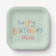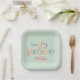 This fun kids birthday party plate features a colourful 'Happy Birthday' text against a light green background. This item and many more featuring a joyful happy kiddy picnic party scene forms the collection titled "Bird on Balloon'. The collection include invites, napkins, favours, garden f& bunding flags and much more.