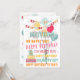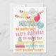 Fun colourful birthday balloon illustration. With room to customise or personalise with a name on the front, and your name(s) and text on the backside of the card.