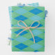 These colourful geometric patterns feature a stripe, argyle, and plaid, and include shades of blue and green. Great for a man's birthday party or boy's baby shower.