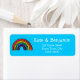 A modern vibrant return address label featuring a colourful rainbow illustration. You can even customise the background to their favourite colour. Designed by Thisisnotme©