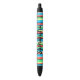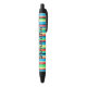 Fun colourful stripes of vibrant green, yellow, red, black, and turquoise blue on your own custom personalised pens - great for school or the office, where pens often go missing. Shown is the editable name, Samantha, in black script handwritten lettering. The text colour, size, and style is editable using the Design Tool. Designed by Heard_. #PersonalizedPen