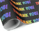 This fun, upbeat thank you wrapping paper design features the message "THANK YOU!", with the letters having a rainbow spectrum gradient like pattern, on a black coloured background. This might be used when wrapping a thank-you gift being given to somebody who has done something special.