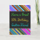 This fun, colourful and whimsical birthday-themed greeting card design features a warm birthday wish like "Have a Great 16th Birthday, Custom-Name!" on the front. The name on the front can be personalised. The top and bottom of the front feature a vibrant, multicolored stripe pattern. The inside features a customisable birthday message. A greeting card like this could be a fun way to deliver birthday wishes to somebody who is celebrating their sixteenth birthday. [~Z0000269]