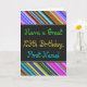 This fun, colourful and whimsical birthday-themed greeting card design features a warm birthday wish like "Have a Great 29th Birthday, First-Name!" on the front. The name on the front can be customised. There are also multicolored stripes at the top and bottom of the front. The inside features a birthday message that can be customised. A greeting card like this could be a fun way to deliver birthday wishes to somebody who is celebrating their twenty ninth birthday. [~Z0000269]