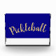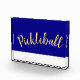 Fun Cool Royal Blue White Base Pickleball Script Photo Block