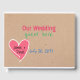 Whimsical home made looking wedding guest book done in craft paper looking background, with a white outlined pink heart. Colourful graffiti like typography gives this guest book a home made feel. Personalise all the text to suit your wedding needs.
