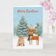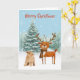 Fun Curious Cat and Stylish Reindeer Christmas Card
