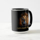 Custom Fun "I Love My Cat" Lion Coffee Mug on a gold and black background with Lion's Head. Personalise your mug with your cats name or text of your choice. Click Edit Design to change the image.