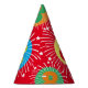 Fun custom kid's Birthday party paper cone hats. Cute design with personalised age number and fireworks and bright colours. Colours can be changed. Colourful design for children's celebration.