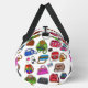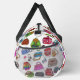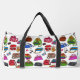 A cute illustrated marker art pattern of purses, bags, totes, jelly bags, knapsacks, nostalgia mini backpacks, handbags, messenger bags, sacks, designer fashion purse styles and more fun hand drawn illustration artsy design deluxe fun cute all-over style duffel bag. Get an epic cartoon style dufflebag today.
