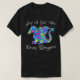 I give wanted to give this a 4 instead of a 5 because these Basic DARK T0shirts run unexpectedly SLIM or Narrow. Which is great if you do not have a potbelly, but I have a paunch. It isn't the shirt's fault that I've got a beer belly. The design and shirt itself is a quality cotton shirt. The color is more of a deep purple, but still a very pretty color. The Basic DARK T-shirts run a bit SLIMMER than the Basic Ts. The neck is a fraction narrower (or seems to be narrower) also. I'm a paunchy middle-aged woman and my neck is 12 inches (31cm) thick and the neckline fell about the same as in the photo of the man, and I had the desire to tug it a bit. So if you're a thick necked man or like loose shirts, be aware these are slimmer shirts. Once I get rid of my lockdown paunch it'll look great. The shirt washed well in cold water with no apparent bleeding. We don't have a dryer, so it hung dry. Did not shrink. Love the colors and the design. The design looks smaller on my shirt than it does on the model on-line. But still, it looks good on the shirt. The printing looks as it does on the model, just the size seems fractionally smaller. Washed garment in cold water, hung dry and design appeared unaffected.