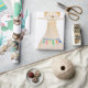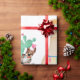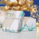 Adorable llamas, doggies and floral owls create a desert scene complete with blooming cacti on this fun wrapping paper in predominately teal, turquoise and green.