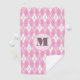 This custom ladies personalised golf towel features white and pink argyle with a customisable monogram on a pink background. It's a stylish, cute gift for a golfer. It's a useful present for your mum, sister, grandma, or any lady whose hobby is playing golf. Women monogram golf towels.