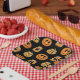 These fun Halloween party paper plates feature a black background with a pattern of cute orange pumpkins. This is the perfect design for a fun Halloween party!