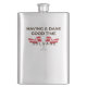 The product is a good size and came exactly as it was pictured. The lid is not attached to the flask, which could be dangerous on drunken nights... The print came out surprisingly well and looks very sharp. Would definitely recommend.