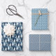 Cute blue and white Christmas pine trees pattern design. And complimentary white polka dots and diagonal stripes patterns on trendy light and dark teal blue backgrounds. Vintage, funky, modern hipster designs for the lover of winter and December holiday themes. Fun paper sheets for wrapping those fun birthday, December surprise gifts or Christmas presents with. Ornate, elegant, stylish and eclectic patterns for the fancy artistic hip crafter, vintage retro art style motif lover. Available on a variety of modern crafts and office products. Such as wrapping and tissue paper, gift tags, bags and favour boxes, stickers, ribbons, stationery and envelopes.