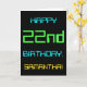 This simple and fun birthday greeting card design features a message like "HAPPY 22nd BIRTHDAY, SAMANTHA!". It also features a fun look inspired by digital computing. The name on the front and the message on the inside can be personalized. It could be sent or given to somebody who is celebrating their twenty second birthday, and who perhaps works (or worked prior to retirement) as a database administrator, a computer programmer, a network administrator, a software developer, an electrical engineer, or who otherwise enjoys using computers. [~Z0000100]