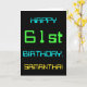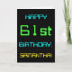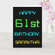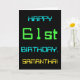 This simple and fun birthday greeting card design features a message like "HAPPY 61st BIRTHDAY, SAMANTHA!". Its look is inspired by the field of digital computing. The name on the front and the message on the inside can be customised. It could be sent or given to somebody who is celebrating their sixty first birthday, and who perhaps works (or worked prior to retirement) as a computer programmer, a software developer, a database administrator, a network administrator, an electronics engineer, or who otherwise enjoys using computers. [~Z0000100]