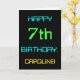This simple and fun birthday greeting card design features a message like "HAPPY 7th BIRTHDAY, CAROLINE!". Its look is inspired by the field of digital computing. The name on the front and the message on the inside can be customised. It could be sent or given to somebody who is celebrating their seventh birthday, and who perhaps works as a database administrator, a computer programmer, a network administrator, a software developer, an electrical engineer, or who otherwise enjoys using computers. [~Z0000100]