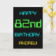 This simple and fun birthday greeting card design features a message like "HAPPY 82nd BIRTHDAY, ANDREW!". It also features a fun look inspired by digital computing. The name on the front and the message on the inside can be personalised. It could be sent or given to somebody who is celebrating their eighty second birthday, and who perhaps works (or worked prior to retirement) as a computer programmer, a software developer, a database administrator, a network administrator, an electronics engineer, or who otherwise enjoys using computers. [~Z0000100]