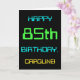 This simple and fun birthday greeting card design features a message like "HAPPY 85th BIRTHDAY, CAROLINE!". Its appearance is inspired by the field of digital computing. The name on the front and the message on the inside can be personalised. It could be sent or given to somebody who is celebrating their eighty fifth birthday, and who perhaps works as a database administrator, a computer programmer, a network administrator, a software developer, an electrical engineer, or who otherwise enjoys using computers. [~Z0000100]