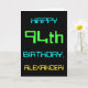 This simple and fun birthday greeting card design features a message like "HAPPY 94th BIRTHDAY, ALEXANDER!". Its look is inspired by the field of digital computing. The name on the front and the message on the inside can be customised. It could be sent or given to somebody who is celebrating their ninety fourth birthday, and who perhaps works (or worked prior to retirement) as a computer programmer, a software developer, a database administrator, a network administrator, an electronics engineer, or who otherwise enjoys using computers. [~Z0000100]