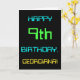 This simple and fun birthday greeting card design features a message like "HAPPY 9th BIRTHDAY, GEORGIANA!". Its look is inspired by the field of digital computing. The name on the front and the message on the inside can be customized. It could be sent or given to somebody who is celebrating their ninth birthday, and who perhaps works as a computer system administrator, a computer programmer, a network administrator, an electrical engineer, a software developer, or who otherwise enjoys using computers. [~Z0000100]