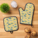 Fun Dinosaur Pattern Yellow Oven Mitt & Pot Holder Set