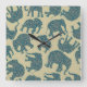 A fun Square Wall Clock with Elephant silhouettes, filled with a dark blue and burgundy Paisley pattern, on a beige background. Part of the Posh & Painterly 'Heffalumps' collection, this pattern can be adjusted to fit any Wall Clock.