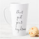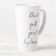 On this white classic latte mug is the text, "Don't quit your day dream" on either side in handwriting script creating an inspiring quote to start your day. Can be customised if you wish to use a different quote.