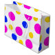 Bright blue, pink, and yellow dots over a white background will make all your packages fun!