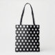 Classic polka dot pattern tote with black background and white dots.