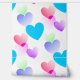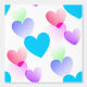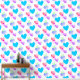 The design features colourful gliding hearts in bright shades of blue, red, pink, purple, and green colours - all presented in an elegant and fun pattern.