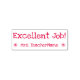 This positive rubber stamp design features the praise message "Excellent Job!" and a personalised teacher's or educator's name. It also features decorative flower icons. It could be used by a school teacher, educator, or tutor when marking assignments, to acknowledge that the student has done well.