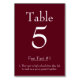 This modern and elegant wedding table number card features a simple black and white design, with a burgundy coloured background and white text. A fun fact about the bride and groom or couple is printed below the table number. It's a funny, cute, and unique way to entertain your guests and let them see a personal side of you.