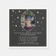 Fun Fact Napkins about Graduate Photo Graduation Party Napkins. Dark grey chalkboard background with white stars and a custom photo in an oval frame. Add graduate photo and fun facts about the graduate and make fun facts napkins for the graduation celebration.