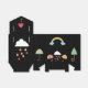 Fun Favour Box W/Umbrellas, Rain & Rainbow. Black Background & Colourful Raindrops Give An Elegant Appearance to The Favour Box.