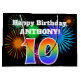 This fun, vibrant gift bag design features a colourful celebratory fireworks inspired pattern, along with the number "10" having a multicolored rainbow inspired gradient pattern, on a black coloured background. It also features a customisable name and event message, such as a birthday greeting. A fun gift bag like this could be used when wrapping a present or gift being given in celebration of somebody’s tenth birthday. [~Z0000328]