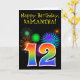 Fun Fireworks + Rainbow Pattern "12" Birthday # Card
