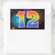Fun Fireworks + Rainbow Pattern "12" Event Number Rectangular Sticker