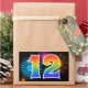 This fun, vibrant sticker design features a colourful pattern inspired by celebratory fireworks, along with the number "12" featuring a multicolored rainbow inspired gradient pattern, on a black coloured background. Stickers like this could perhaps be given as a small gift while celebrating somebody’s twelfth birthday, or perhaps for a couple’s twelfth wedding anniversary, or some other 12th event. [~Z0000324]