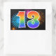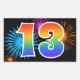 Fun Fireworks + Rainbow Pattern "13" Event Number Rectangular Sticker
